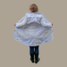De rok tekende ik zelf. De voorkant werd kort/hoog en de achterkant werd lang. De zoom van de jurk heb ik gemaakt m.b.v. ‘banroll’ . Dit is een soort band dat je kunt gebruiken voor het maken van een zoom in dunne of fragiele stof.